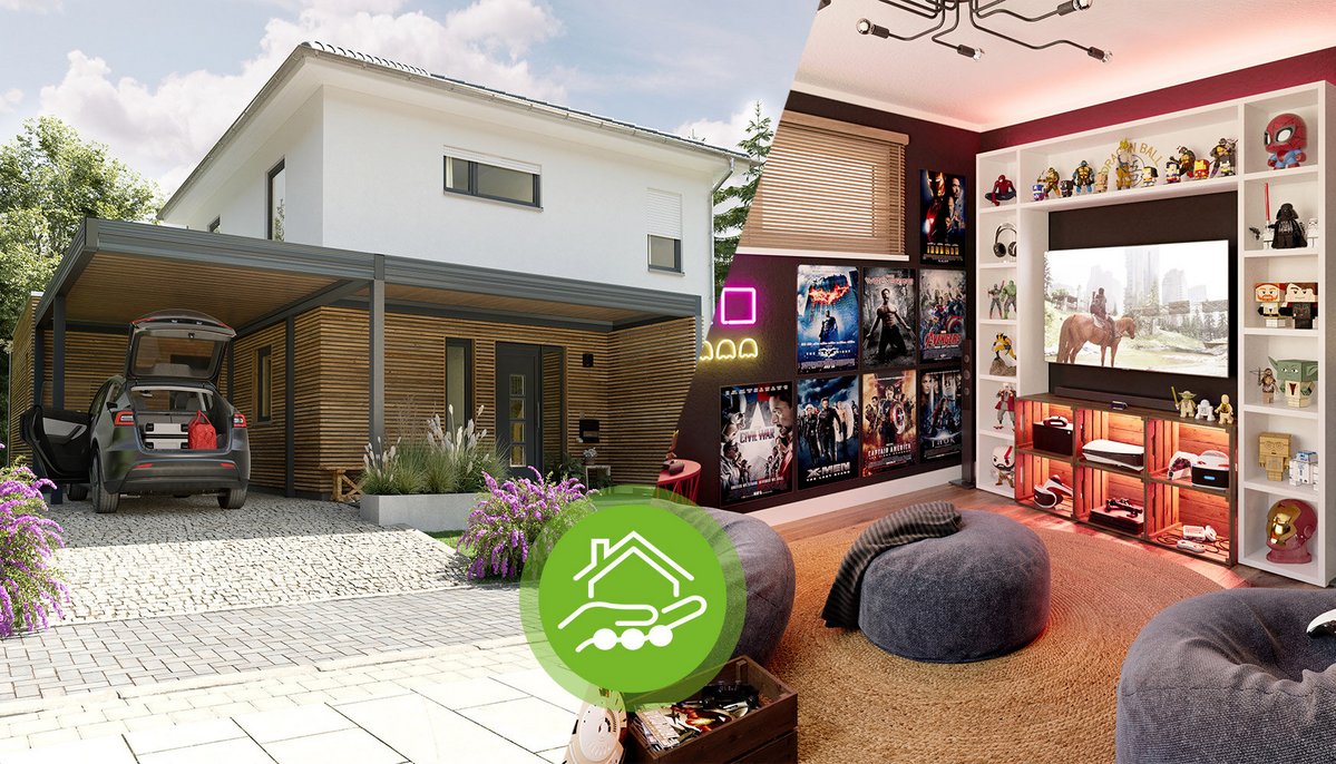 Besonders komfortabel wird es aber in Kombination mit einem Anbau. An diesen lässt sich das Carport ganz einfach integrieren. Außerdem genießen Sie damit das Mehr an Wohnraum. Fehlt Ihnen oftmals ein Raum in der Grundrissgestaltung vieler Häuser? Dann ist der Anbau genau das, wonach Sie suchen. Ob als Hobbyraum, Gästezimmer, Eingangsbereich wie im Stadthaus Flair 152 RE Novo oder als Küche mit Speisekammer wie im Flair 124 – er kann so vieles sein, aber immer genau das Richtige für Sie. Erweitern Sie deshalb Ihr Zuhause um genau den Raum, den Sie brauchen und machen Sie es zu Ihrem ganz persönlichen Rückzugsort.